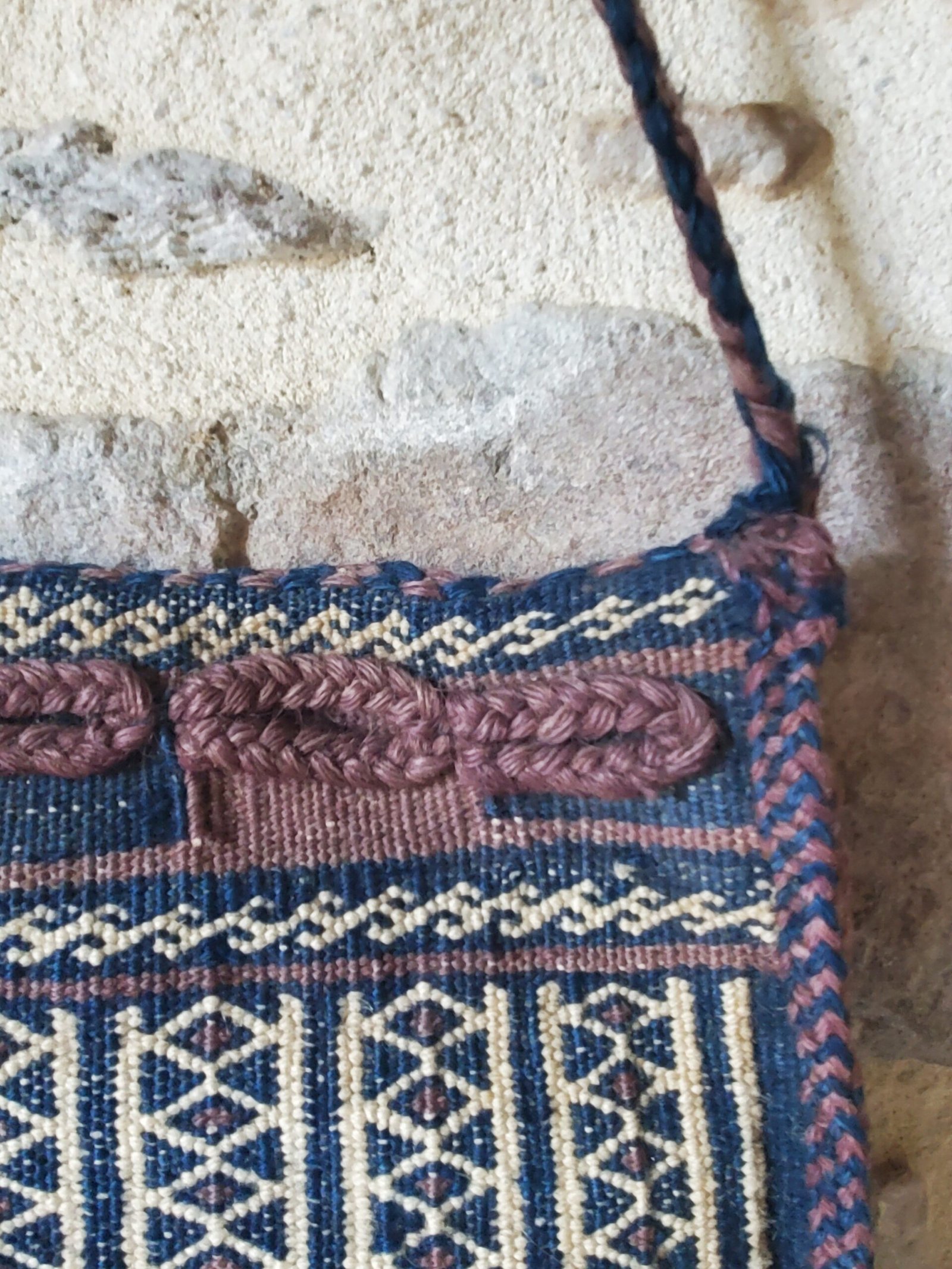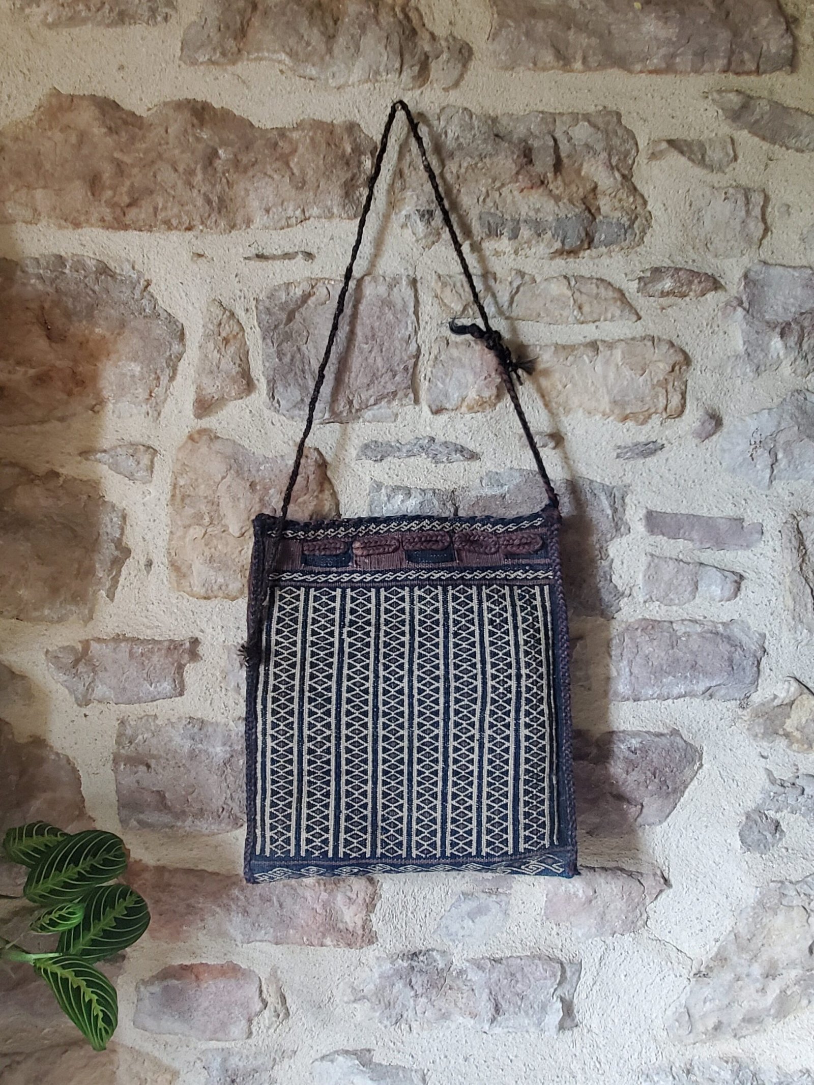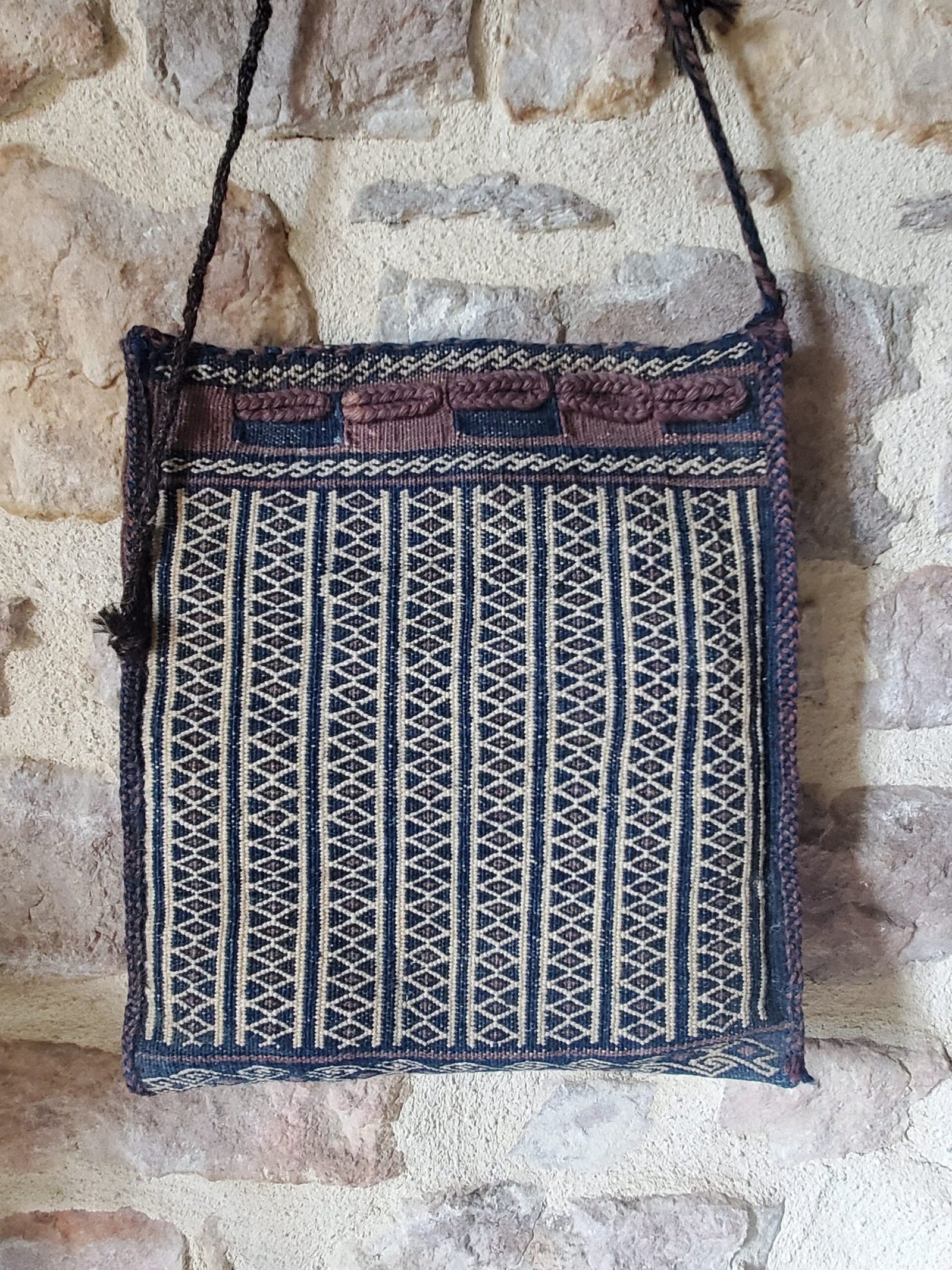 Sac afghan ancien tissé main – Pièce textile décorative