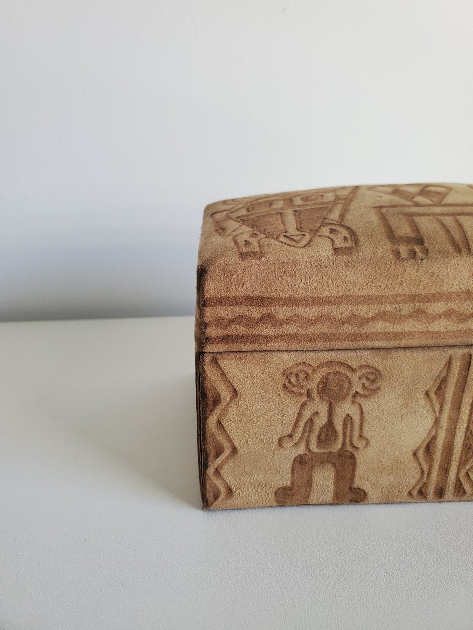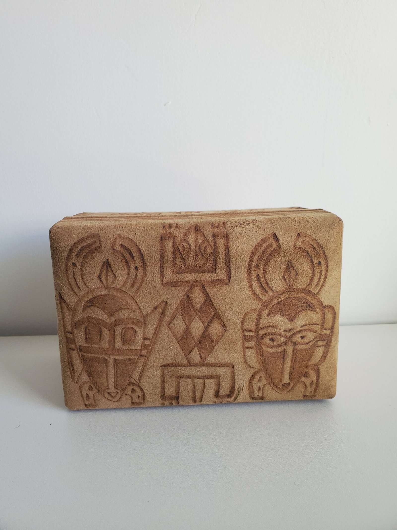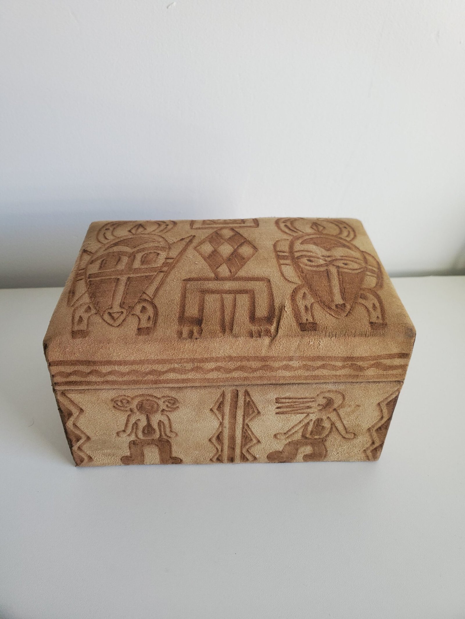 Boîte en bois recouverte de daim – motifs africains ethniques – coffret décoratif rangement bijoux