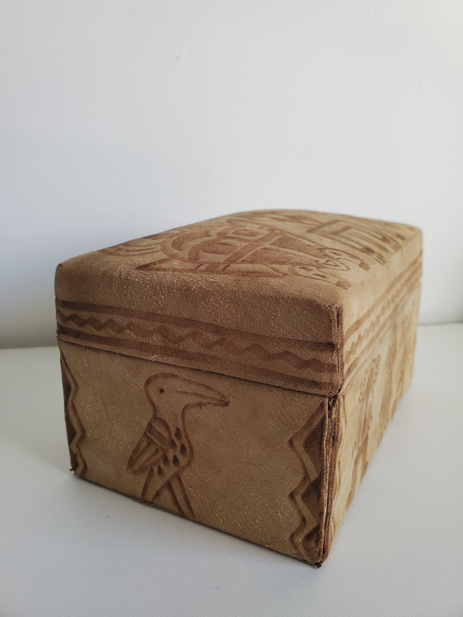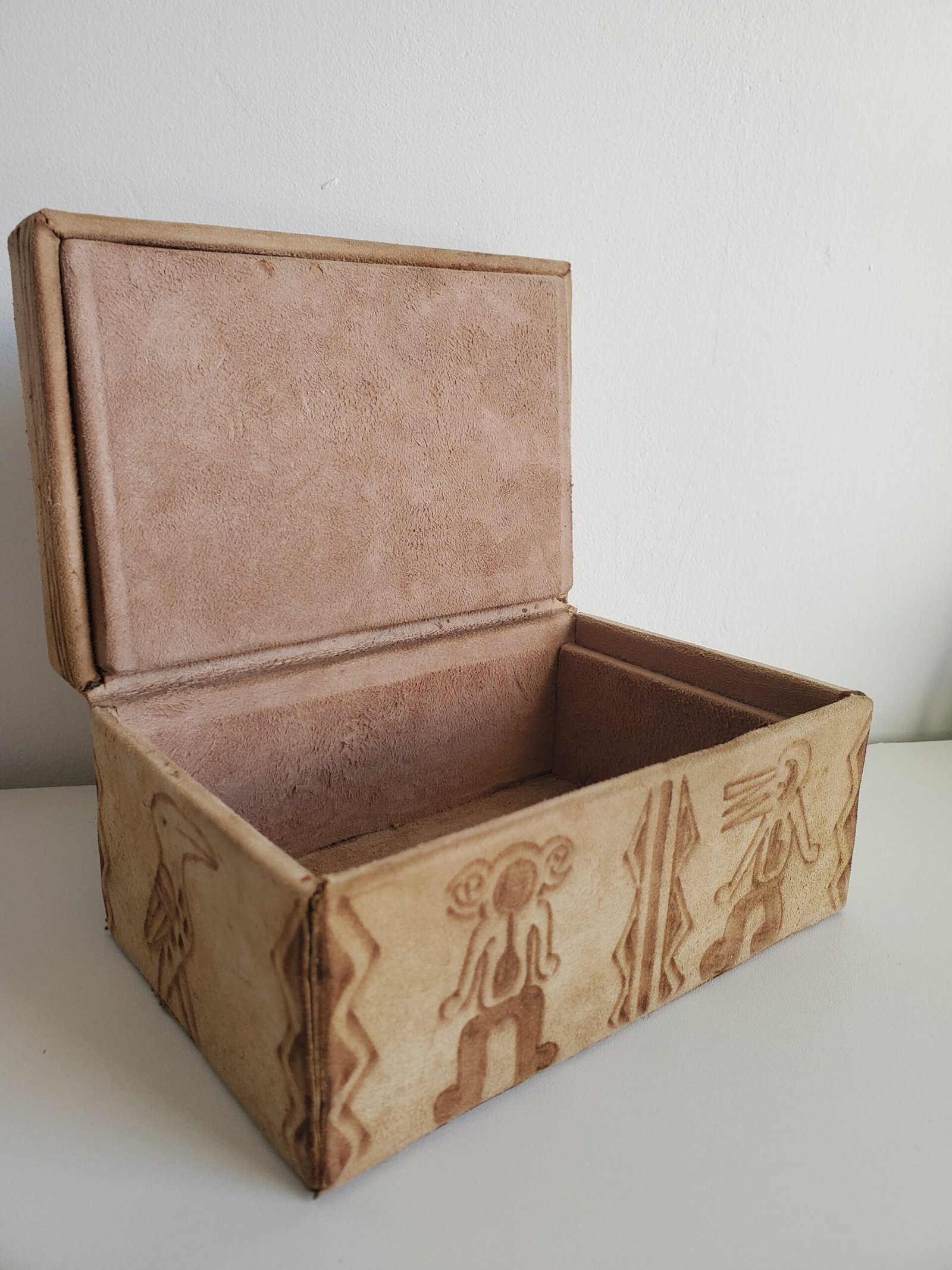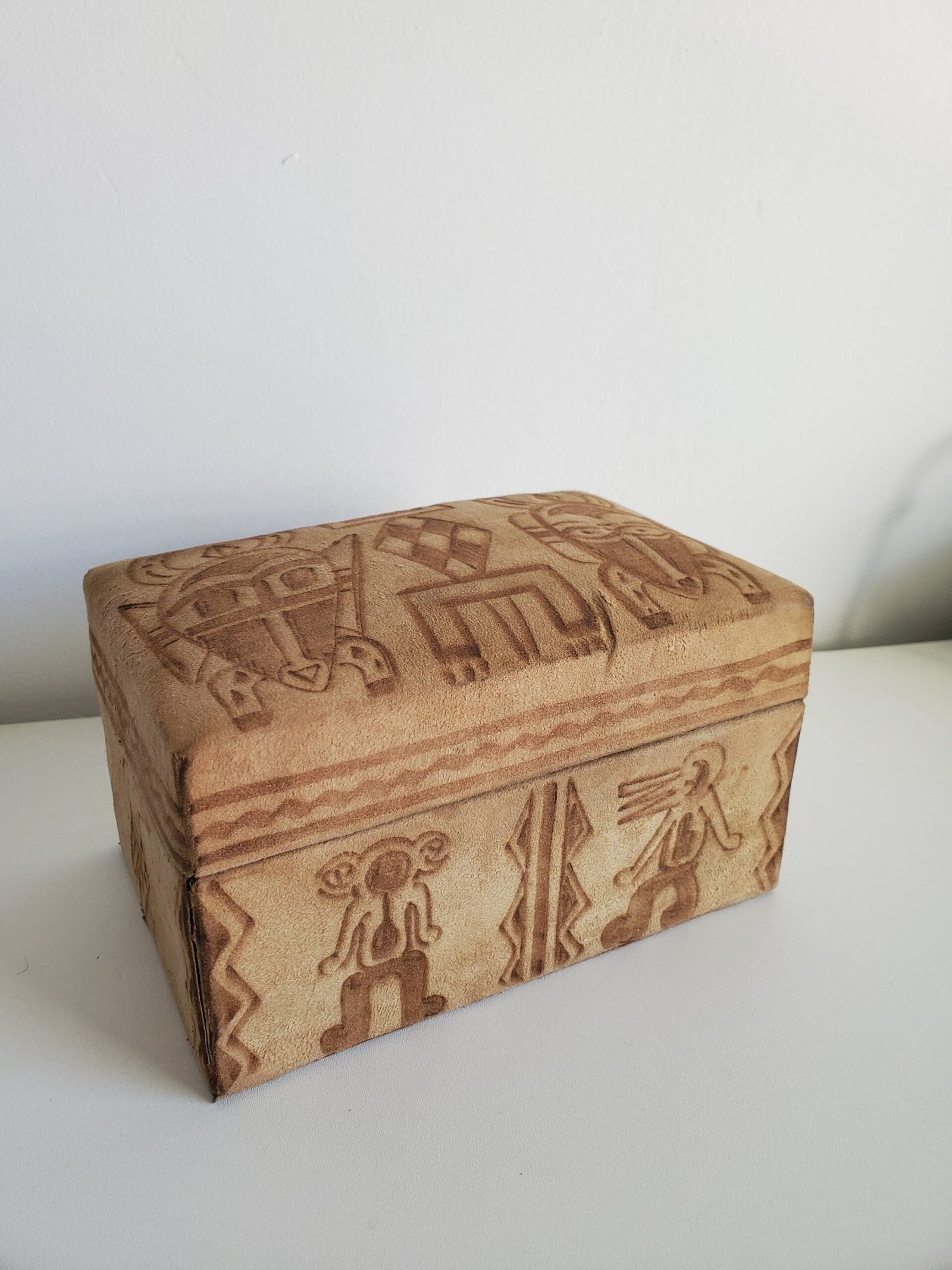 Boîte en bois recouverte de daim – motifs africains ethniques – coffret décoratif rangement bijoux