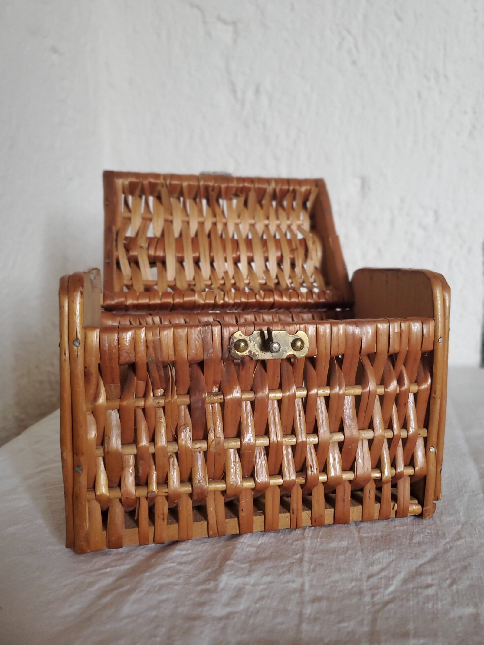 Élégant et intemporel, ce panier vintage en osier tressé incarne le charme discret des objets d’autrefois. Sa silhouette structurée, sublimée par une poignée gainée et un fermoir métallique patiné, en fait une pièce aussi décorative que fonctionnelle.