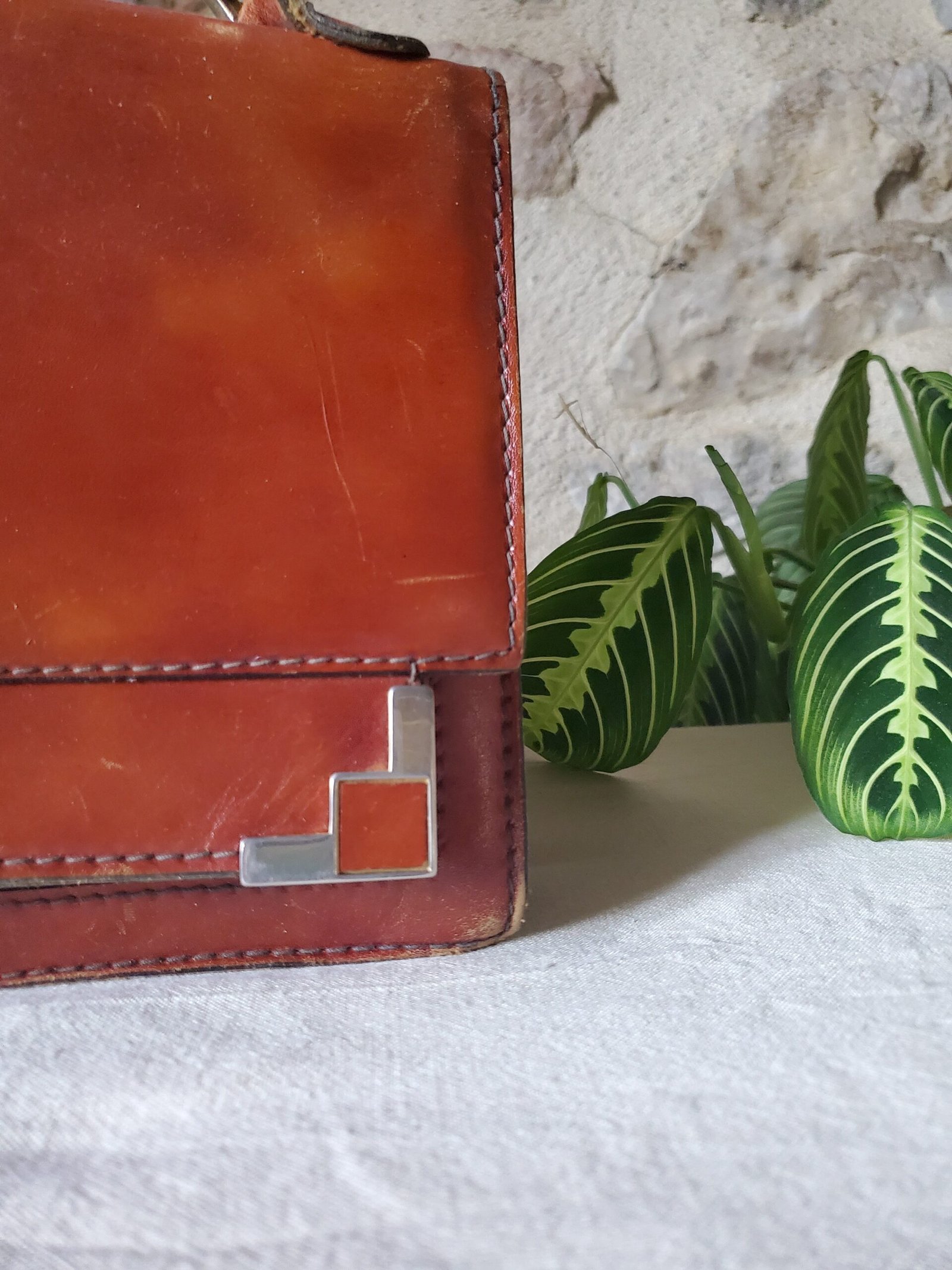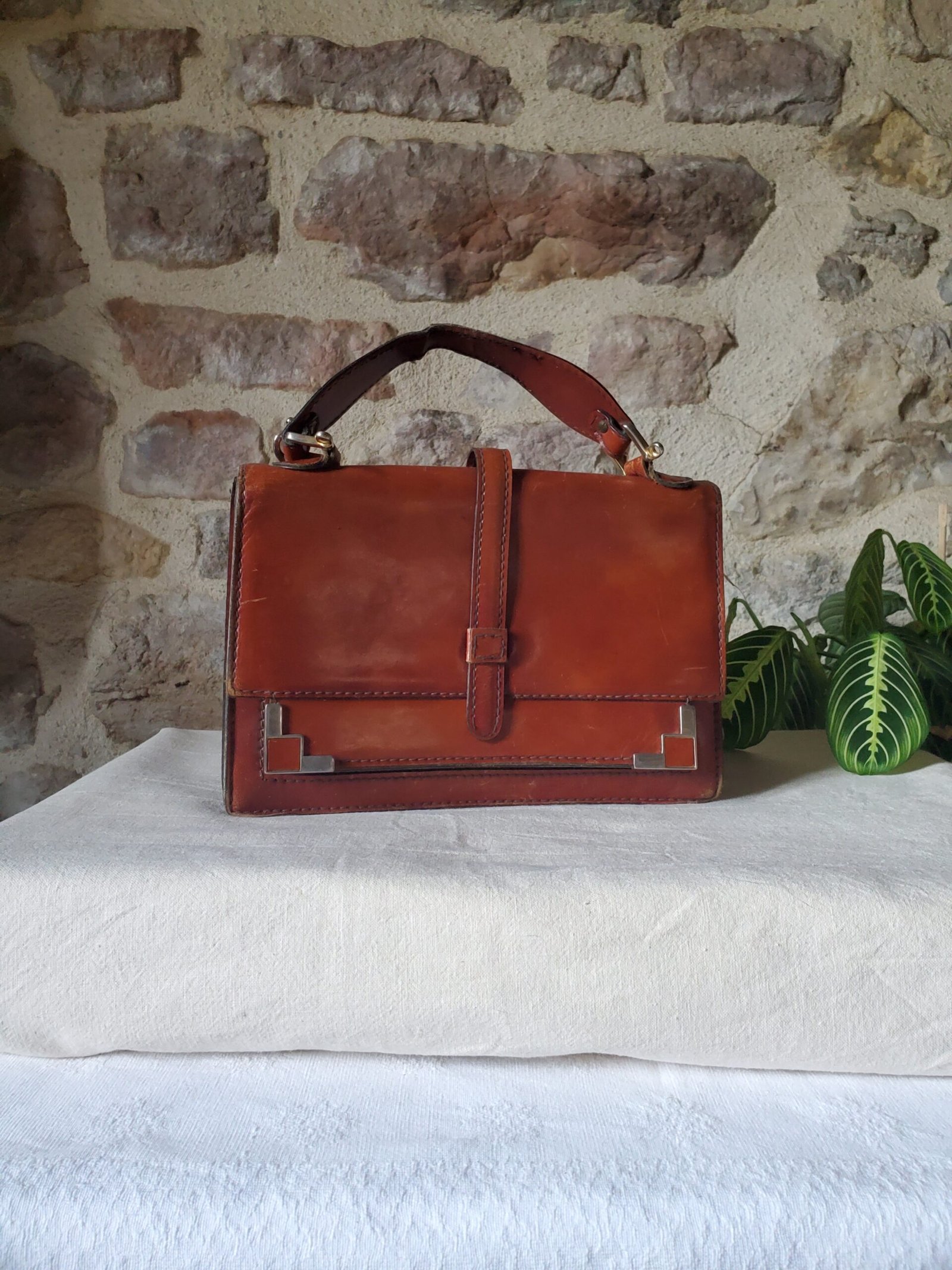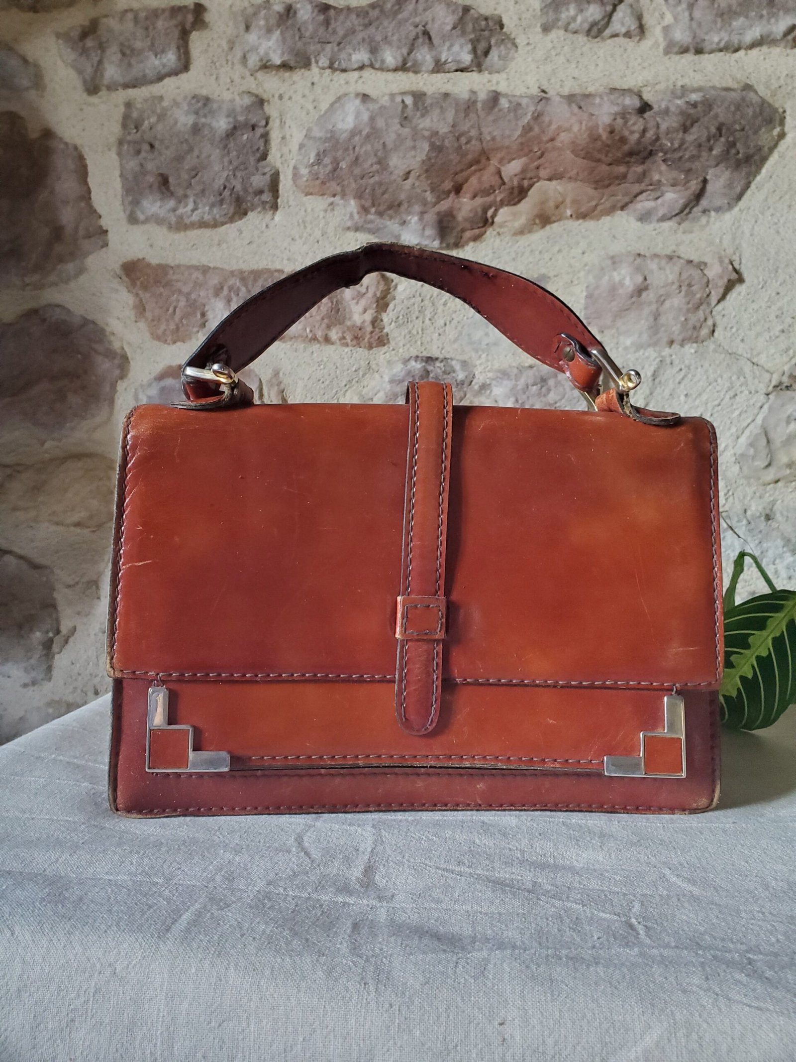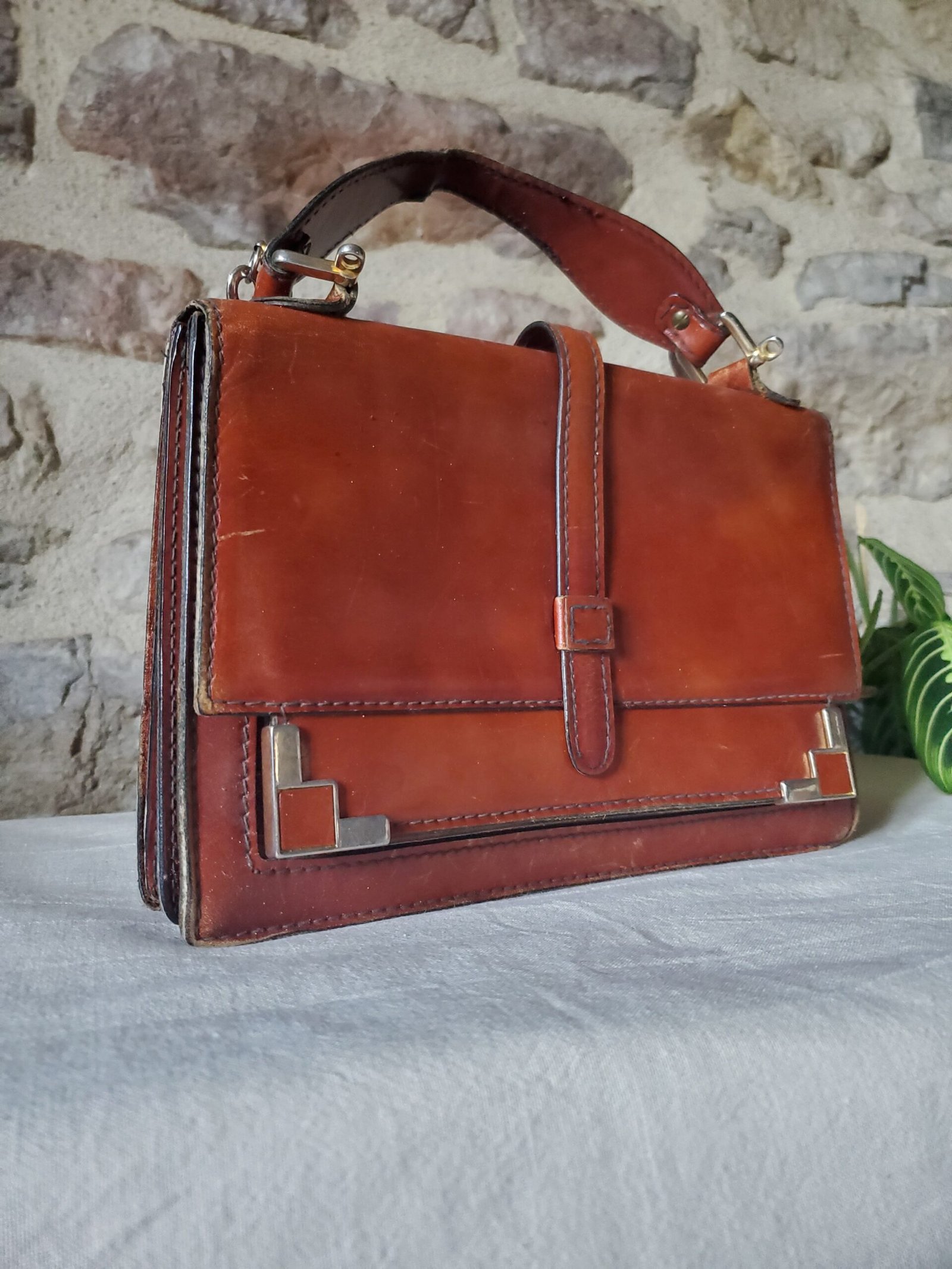 Découvrez l’élégance intemporelle avec ce sac en cuir vintage, une pièce unique qui allie charme rétro et savoir-faire artisanal. Confectionné dans un cuir véritable de qualité supérieure, ce sac affiche une patine chaleureuse et authentique, témoin de son caractère et de son histoire. Son design structuré, rehaussé de surpiqûres apparentes et de détails métalliques en coin, lui confère une allure chic et distinguée.
